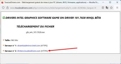 - Prenez de préférence “ fichier.touslesdrivers.com ”.