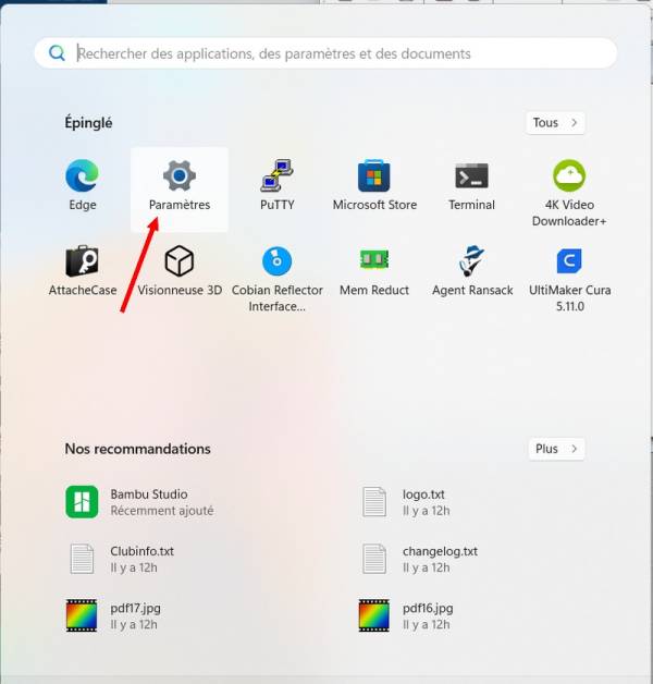 - Clic sur le bouton “Paramètres”.